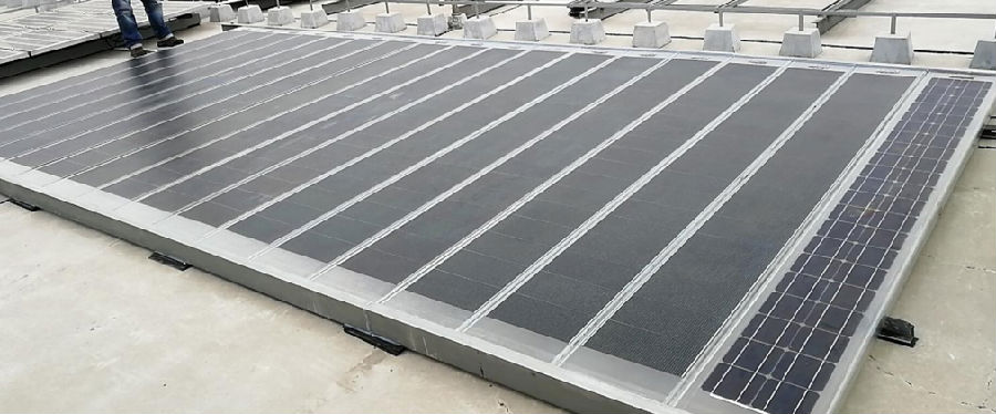 项目概况:由中科院SIAT规划设计,美国ASTI提供铜铟镓硒薄膜芯片技术,U-SOLAR生产的U型薄膜光伏建材(薄膜U型发电玻璃),覆盖于既有建筑楼面代替隔热层。U型发电玻璃具有中空结构,利于光伏与楼面之间的空气对流而散热,产品本身无金属边框的聚热效应,隔热效果优于其他光电建材,据中科院测试数据反馈安装其他平板光伏材料后楼下温度降低3度,而安装U型发电玻璃隔热层后楼下温度降低6度,具有明显的示范意义。U型发电玻璃的强度是夹胶玻璃的数倍,不仅仅是隔热层,而且是楼面的人行参观通道。